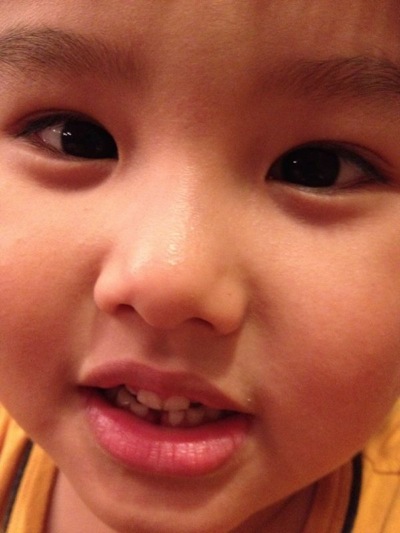 One of his teeth is shaking. He is almost full 6 years old, and it is almost time for him to change to a new set of teeth.