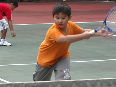 May be last time, when I sent Jay for the Tennis Tots is when Jay is 4 years old, which is a bit too young for him. He could not even carry the racket correctly, and it is too heavy for him. Now, 7 years old kid, is different. I have to buy a new racket for him.