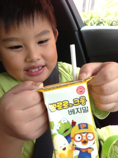 Daddy bought a couple of packet milk for the kids. This one I bought it from a Korean groceries store. It is Pororo Banana Milk.