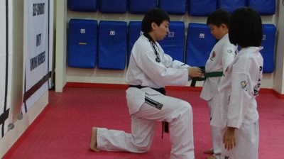 Jay Jay receiving the green blue tip belt.