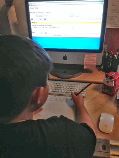 He completed almost all the English and Math. And what I see from the screen are those Chinese one.