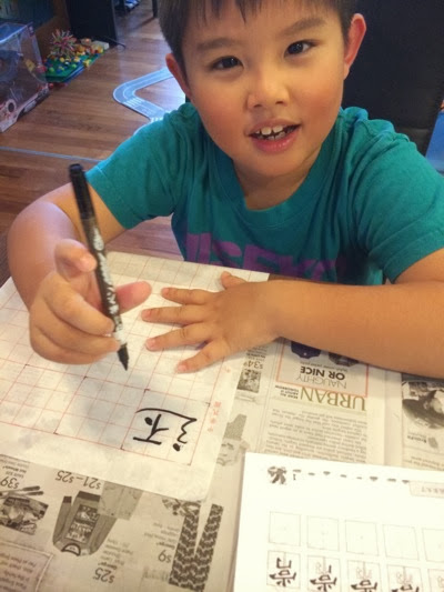 My view: Chinese Calligraphy is one of the root that a Chinese should learn. So, Jay is a Chinese, not only I want him to speak Chinese, read Chinese, I also want him to write Chinese. Note that the use of “I want”. Wahahaha Usually I give him a lot of freedom in choosing his activities. But for this, I “demand” it has to be learned.