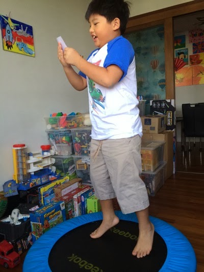 So, I let him do this. Jump on the trampoline, and then memorised those new words.