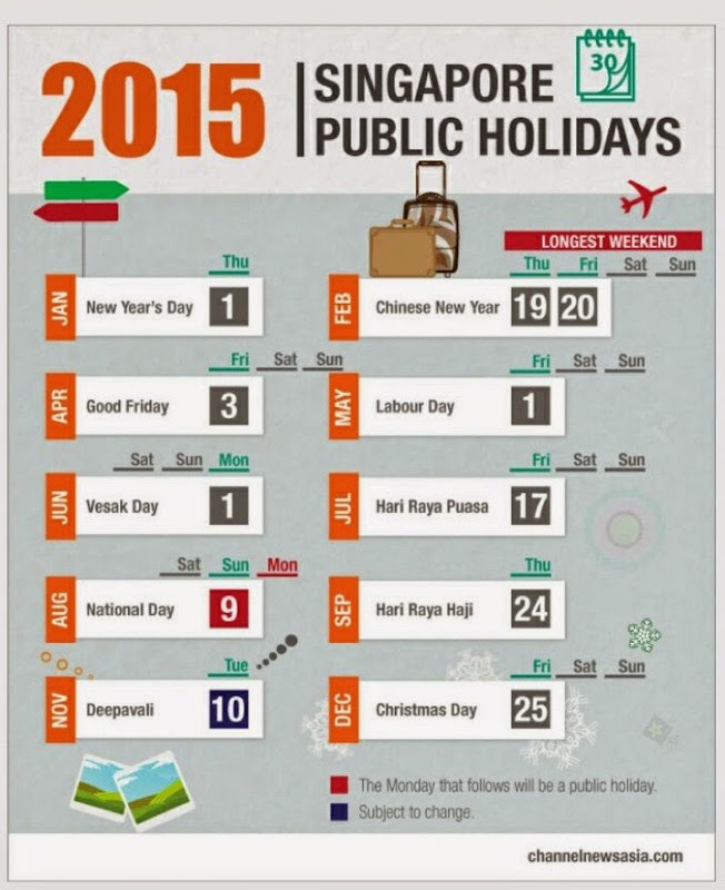 2015 Singapore Public Holidays miniliew 11 years ago Date: Dec 1, 2014 Keep in handy! For your holidays outing planning. Share this:Tweet Print (Opens in new window) Print Share on WhatsApp (Opens in new window) WhatsApp Email a link to a friend (Opens in new window) Email