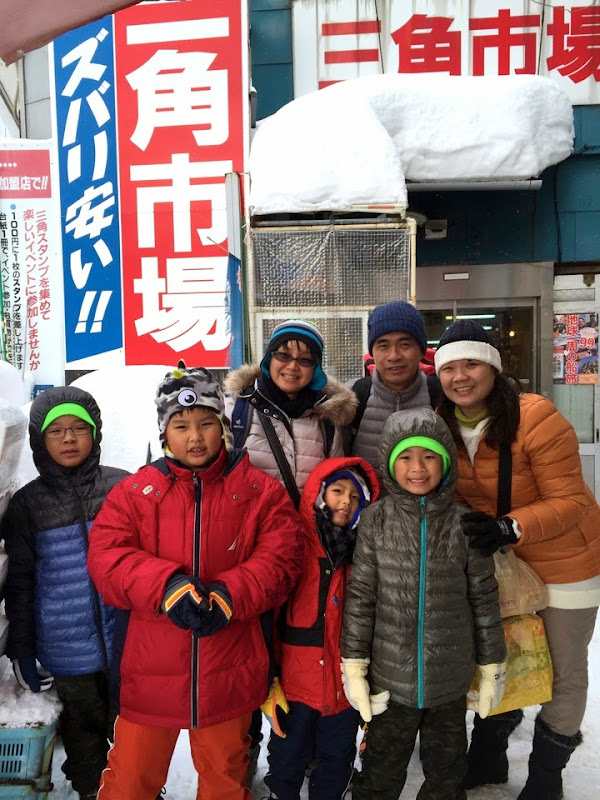Just beside the Otaru JR Train Station, on the right hand side (looking at the Otaru Train Station from the front), there is small stairs case, and that lead up to 三角市场 Seafood Market.