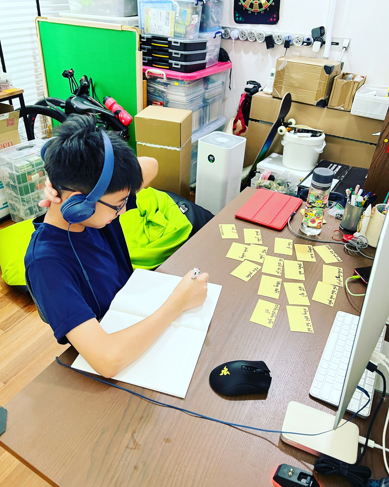 Back in the old days, usually, if you ask him to practise 5 pages, he will only do that 5 pages. But when I take a look at the notebook. He has been really practising. Even when the nights I was not around, he has been practising. That is a big plus point.